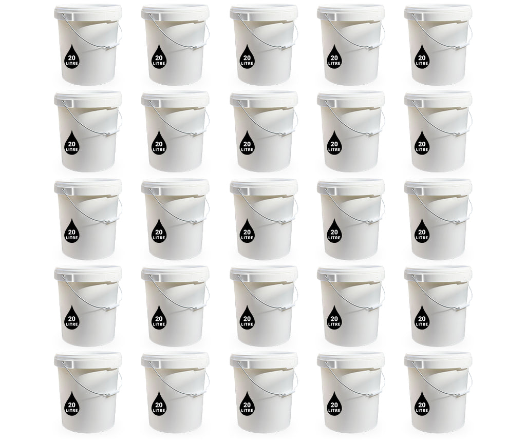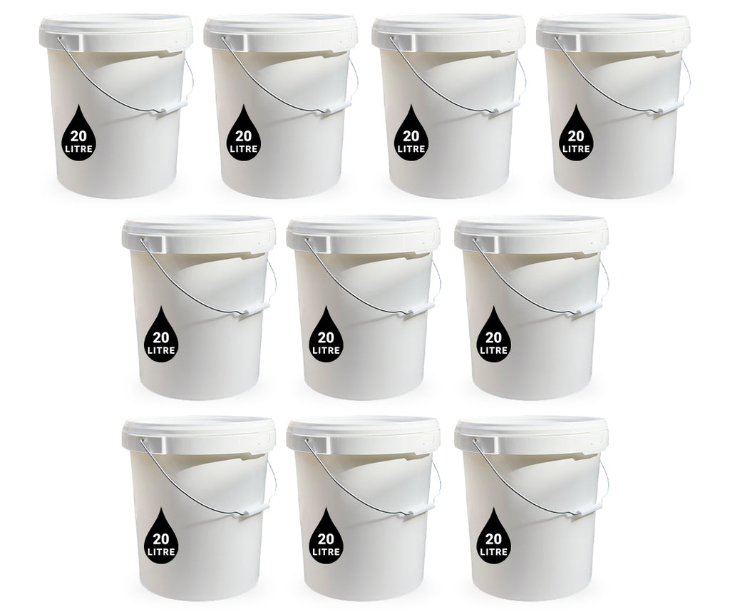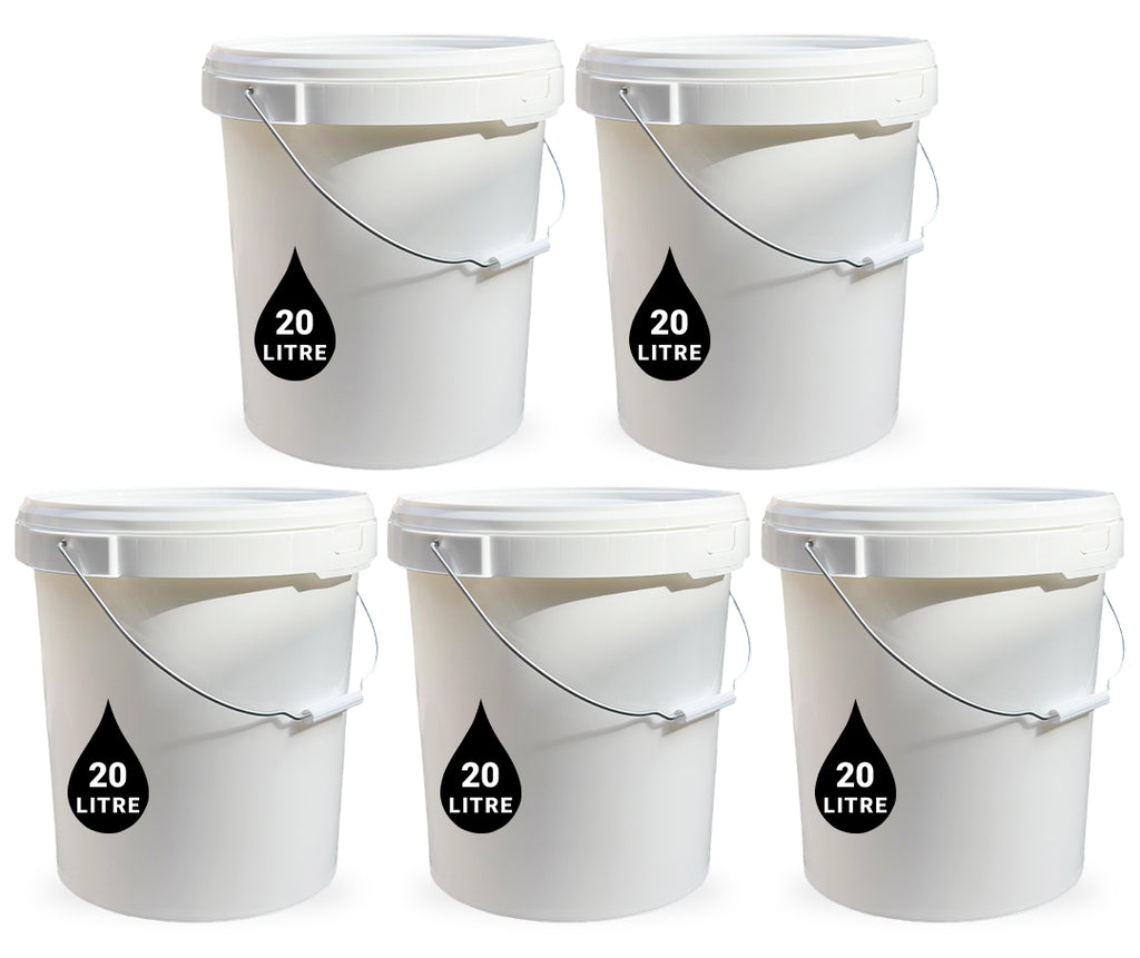 20L Plastic Round Bucket + Lid + Metal Handle - Multi Purpose - Food Grade - PP5 - WHITE