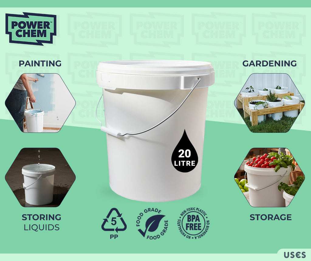 The PowerChem Buckets are robust and durable. Made from PP5 Polypropylene, Its durable construction ensures longevity, making it suitable for heavy-duty use in various environments from food, domestic, commercial. The bucket's wide mouth facilitates effortless filling, pouring, and cleaning.